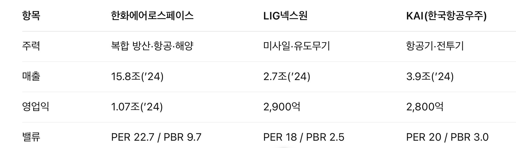 특징: K-9 자주포, 엔진·위성, 해양 장비까지 포트폴리오 다각화. 2025년 1분기 매출·영업이익 급증.