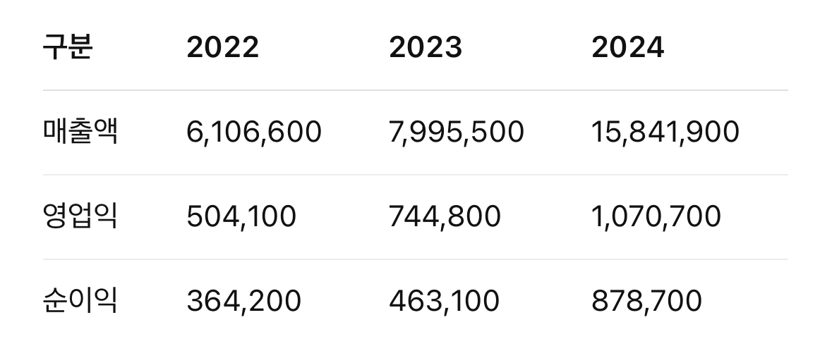 📌 최근 3년 핵심 지표 (단위: 백만 원, 연결)