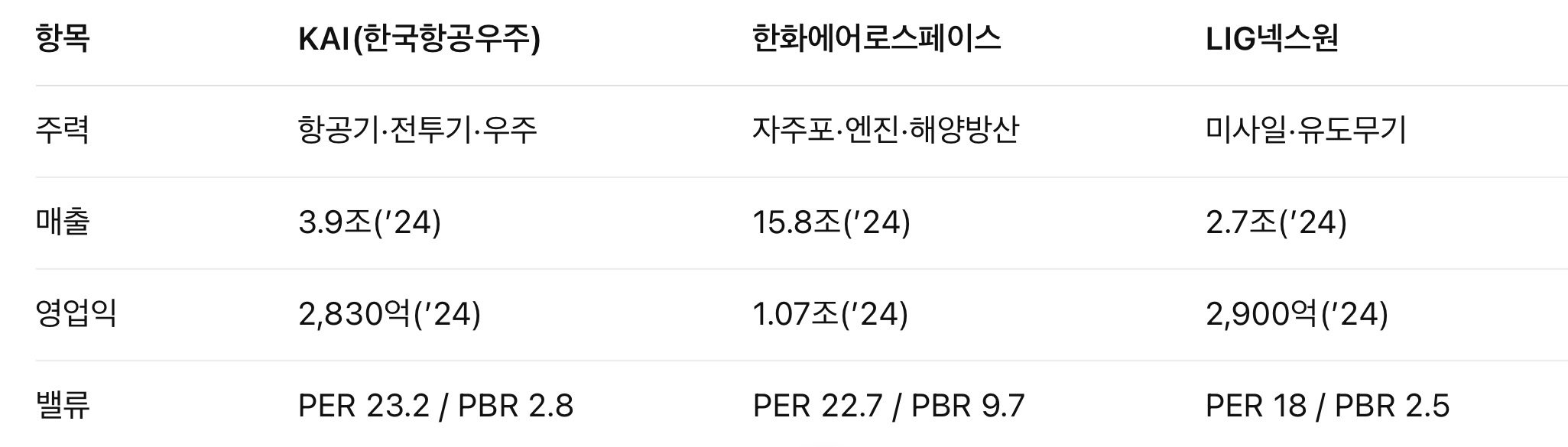 - 다만 한화에어로스페이스 대비 매출/규모는 작고, PER은 비슷해 상대적 매력은 제한적