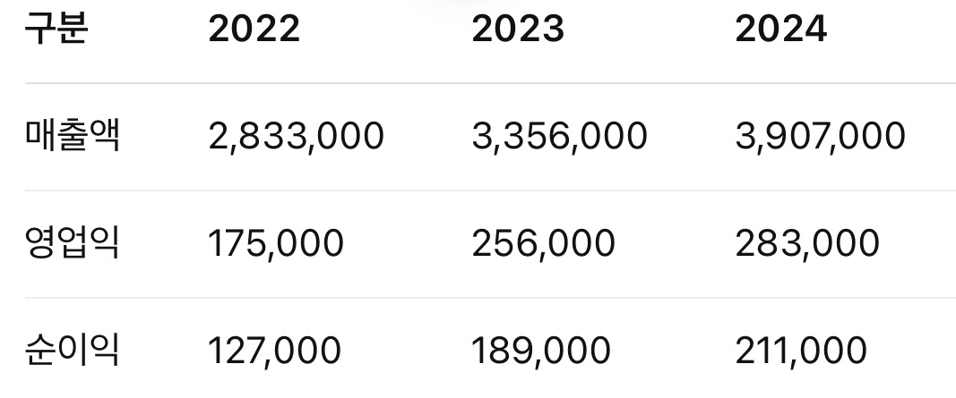 📌 최근 3년 핵심 지표 (단위: 백만 원, 연결)