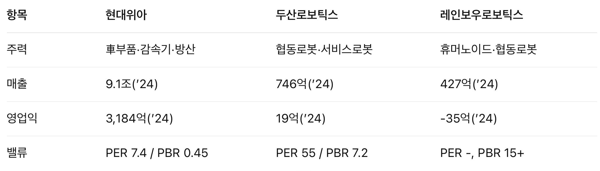 - 안정적 실적 + 로봇 부문 성장성 덕분에 중장기 저평가 매력주로 분류 가능