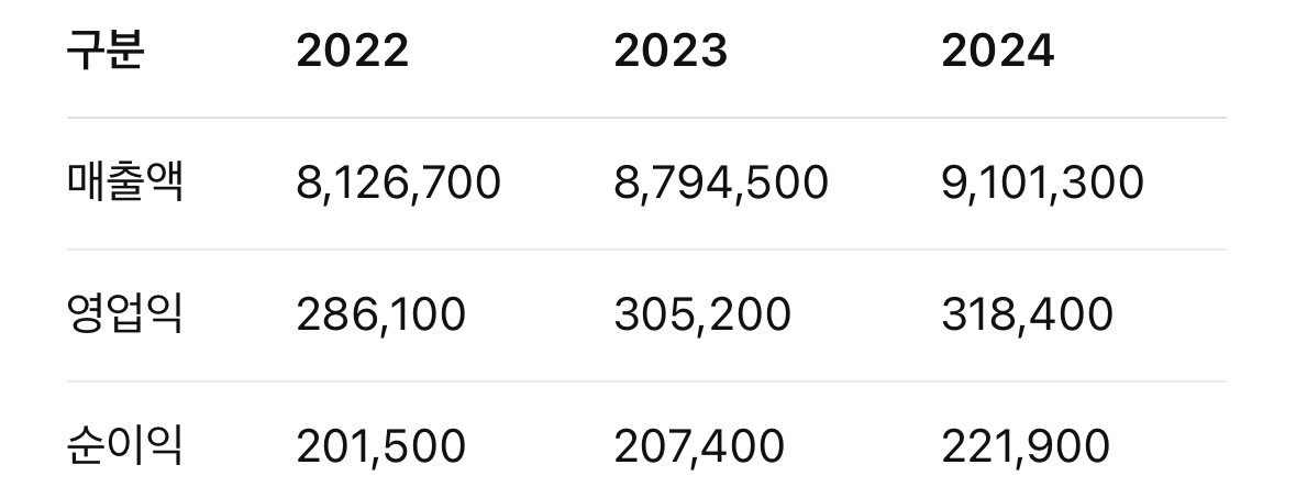 📌 최근 3년 핵심 지표 (단위: 백만 원, 연결)