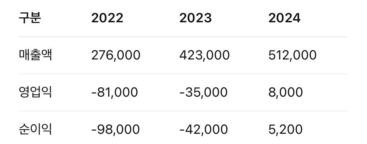 ※ DART 공시 기준. 2024년 첫 흑자 전환 성공.