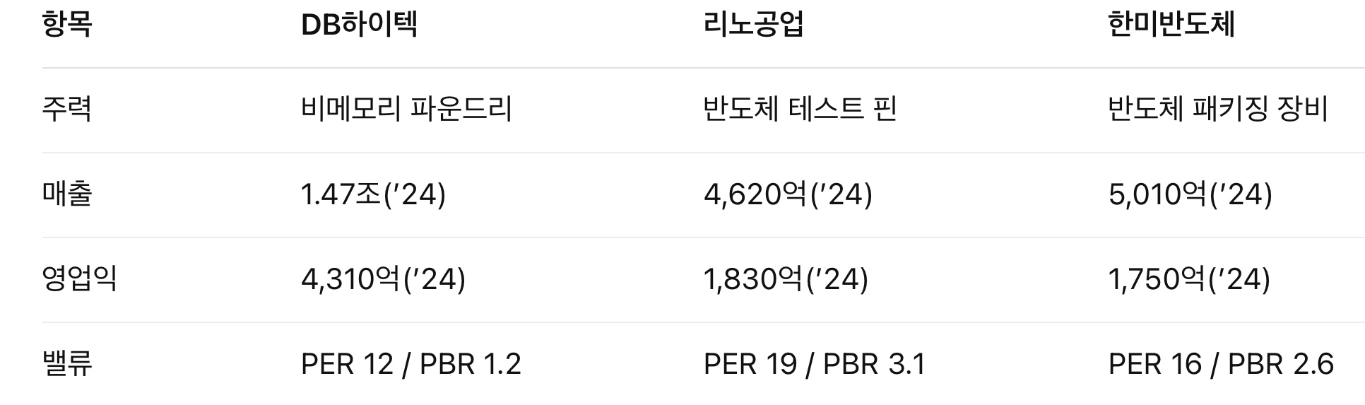 - AI 반도체 수요 증가 시 리레이팅(재평가) 가능성 높음