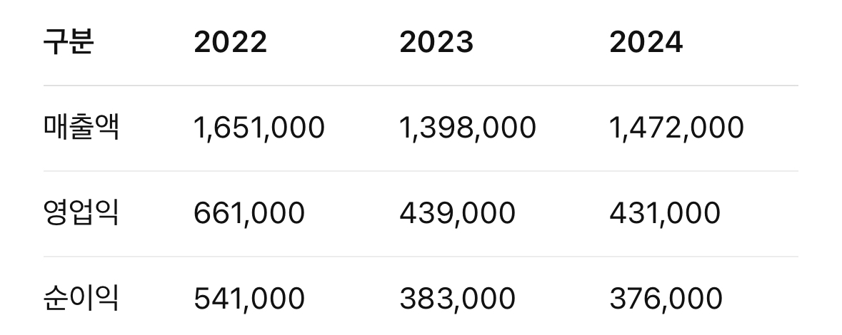 📌 최근 3년 핵심 지표 (단위: 백만 원, 연결)