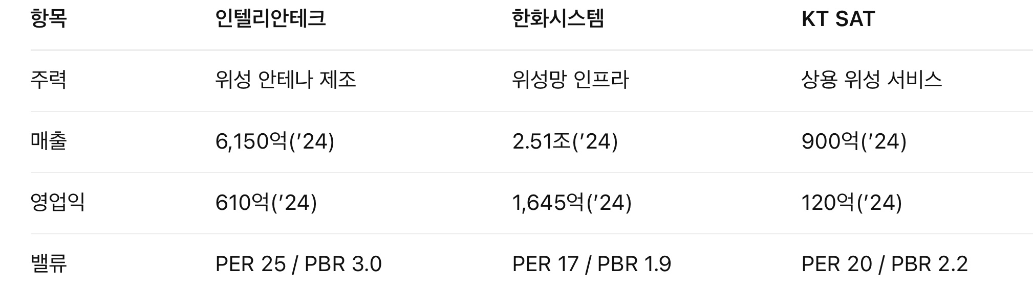 3) 한국의 ‘우주 통신 밸류체인’ 핵심 하드웨어 기업
