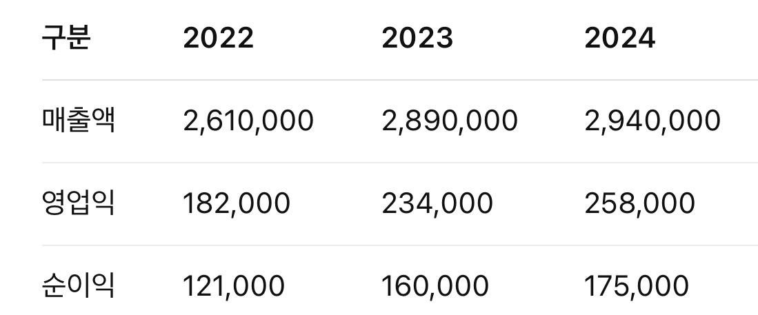 📊 최근 3년 핵심 지표 (단위: 백만 원)