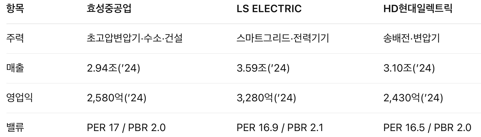 기업명: 효성중공업 (KOSPI: 298040)
