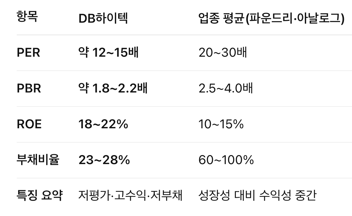 → DB하이텍은 “특화 공정 고수익 모델” 중에서도 세계 최상위 수준의 수익성 보유