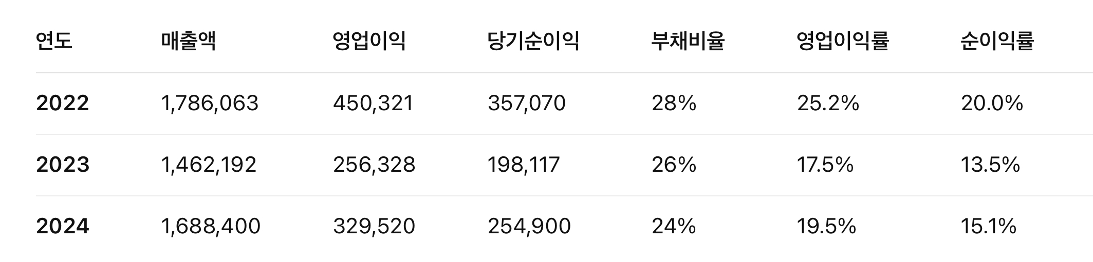 - 영업이익률·순이익률 안정적 유지