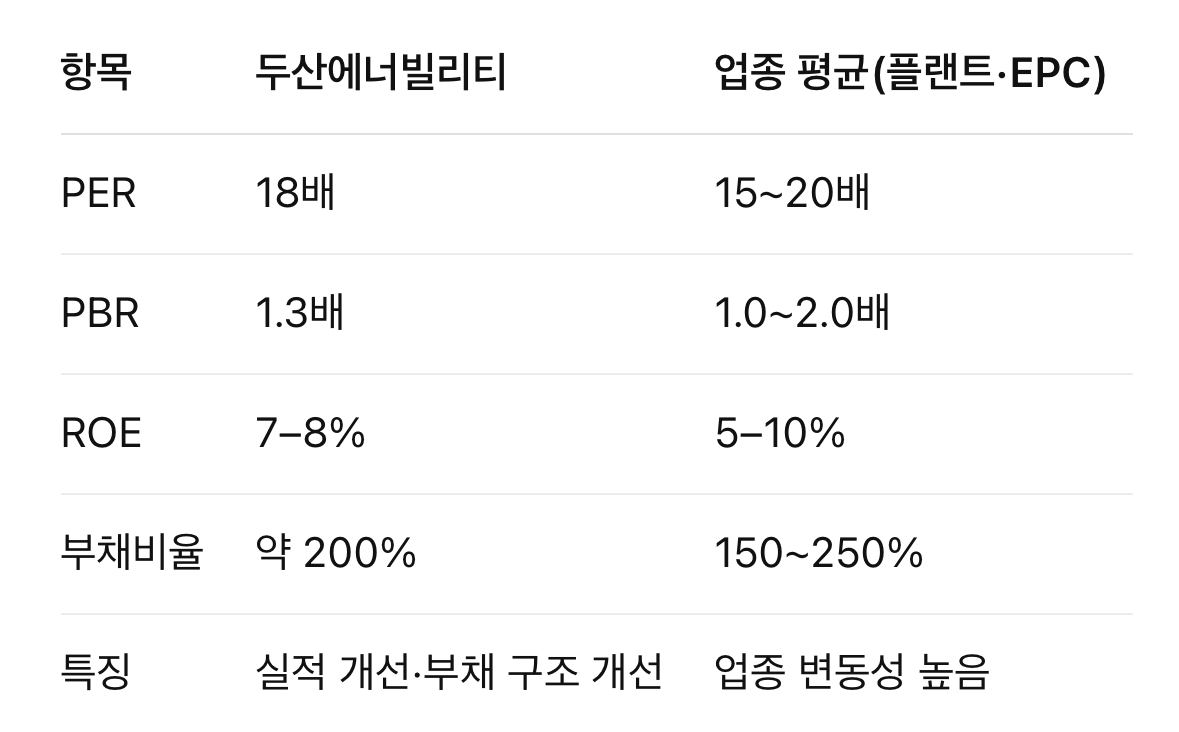 두산에너빌리티는 전통적으로 “발전 플랜트 제작 및 EPC, 산업용 설비, 터빈/보일러/배관/냉각설비” 등을 수행하는 종합 에너지/플랜트 기업.