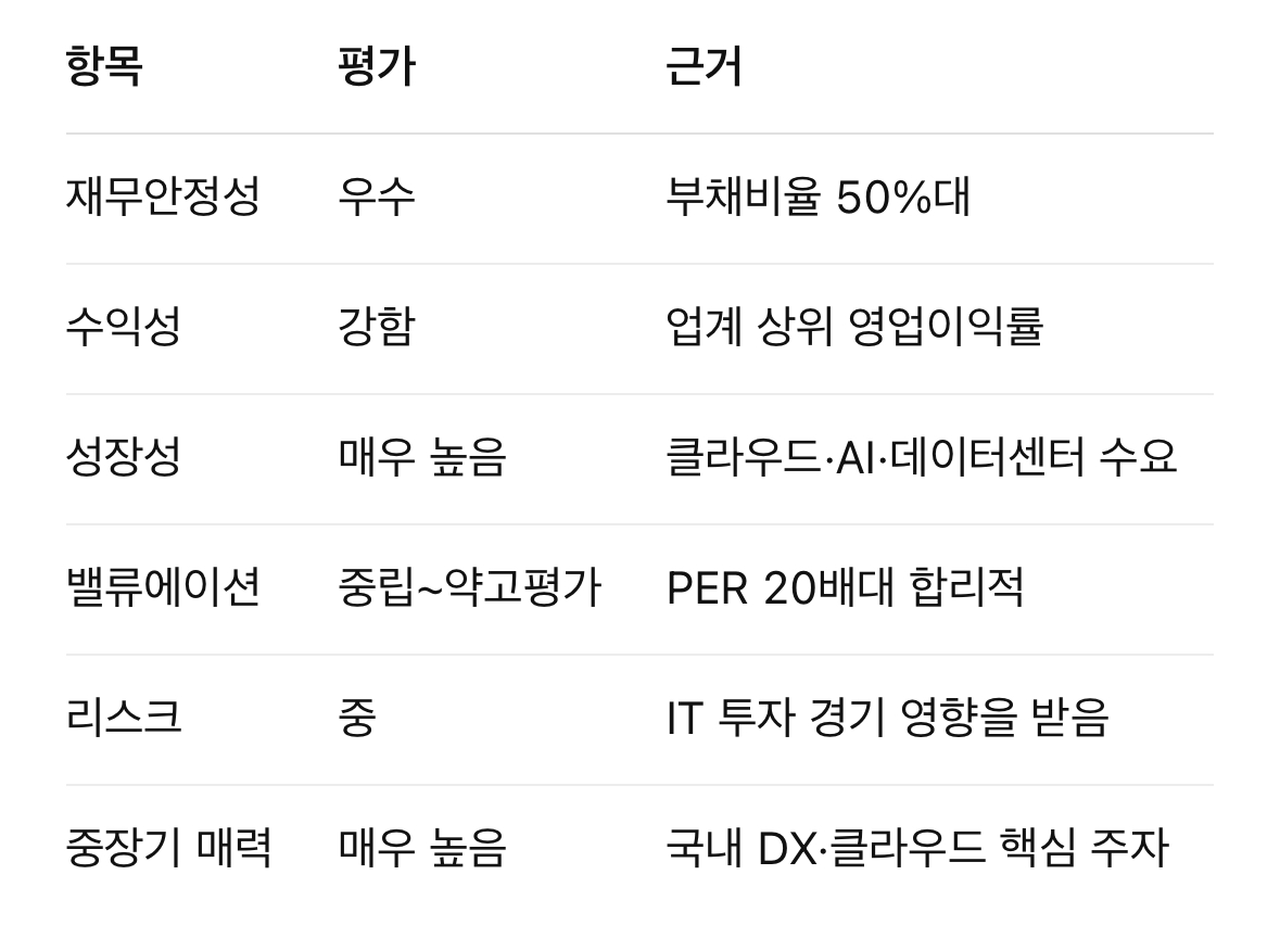 → 데이터센터·클라우드 실질 성장성은 LG CNS가 산업 내 최고 수준