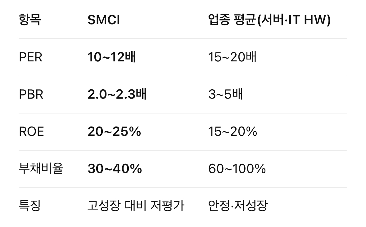 AI CAPEX가 지속되는 한, SMCI는 고변동성은 있으나 가장 직접적인 성장 노출을 가진 기업으로 평가된다.