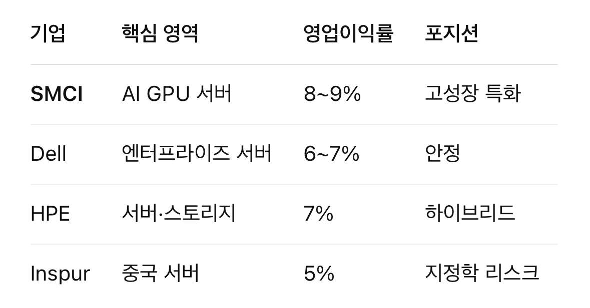 산업 내 비교 (AI 서버 기업)